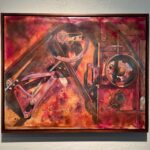 watercolor on paper with encaustic medium, mounted on 1.5″-deep cradled birch panel, set in walnut floating frame