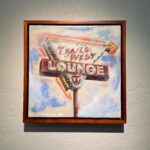 watercolor on paper with encaustic medium, mounted on 1.5″-deep cradled birch panel, set in walnut floating frame