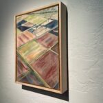 watercolor on paper with encaustic medium, mounted on 1.5″-deep cradled birch panel, set in maple floating frame